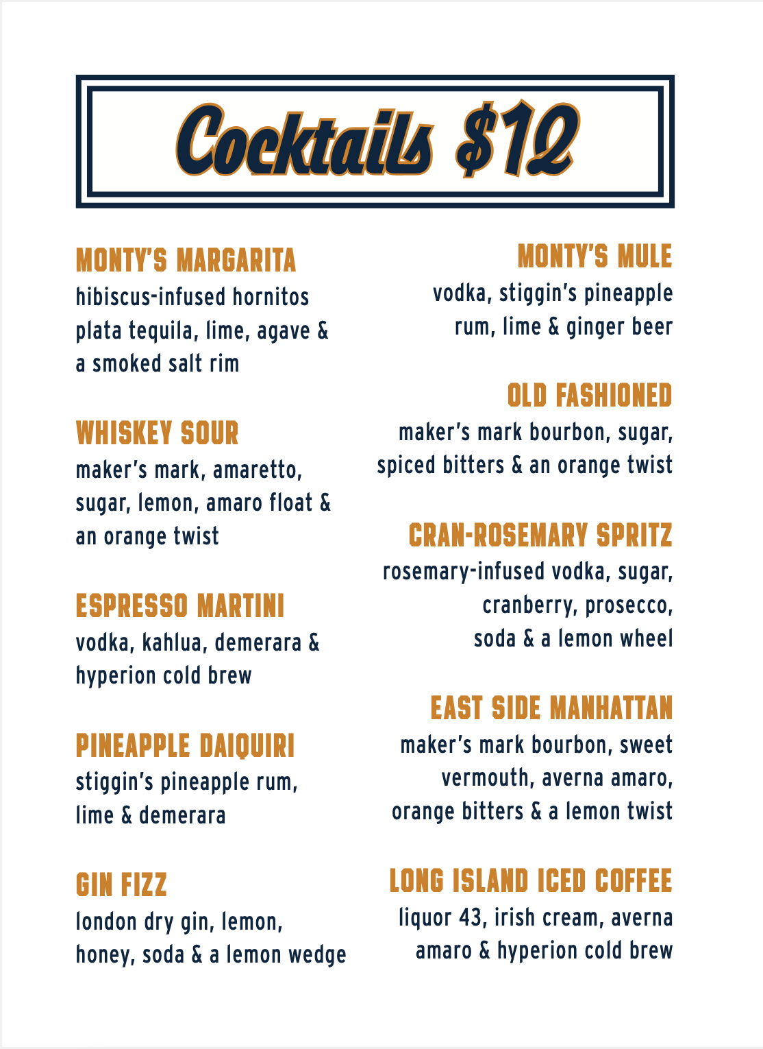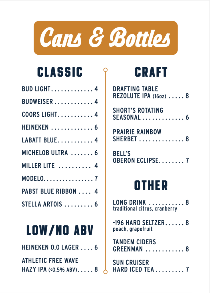 Drink Menu Order Carryout OUR DRAFT LIST IS NOT LISTED ONLINE AS IT ROTATES FREQUENTLY. FEEL FREE TO GIVE US A CALL & ASK!